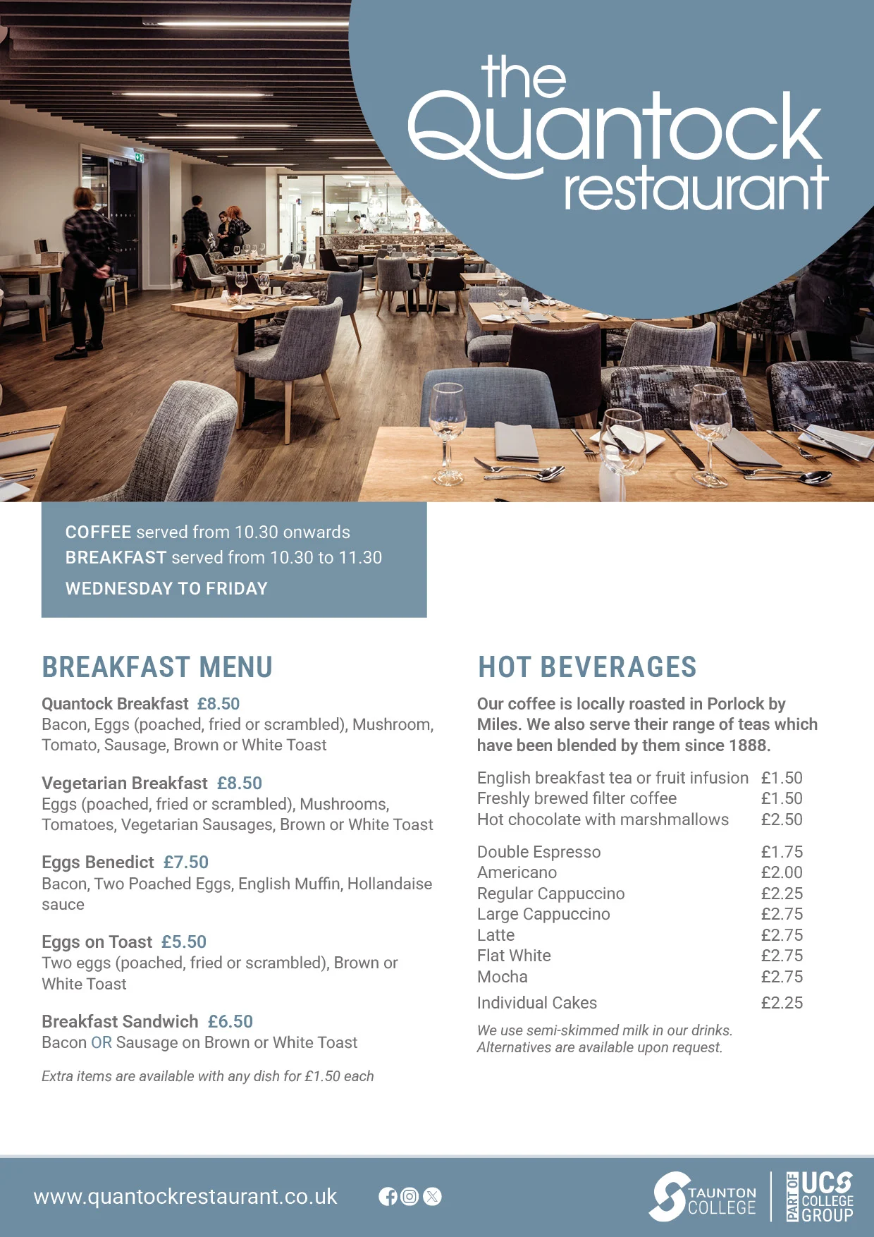 The Quantock Restaurant is more than a restaurant: it’s a living classroom where education meets industry. Our students gain hands-on experience in every aspect of hospitality, from professional cookery to event management.
