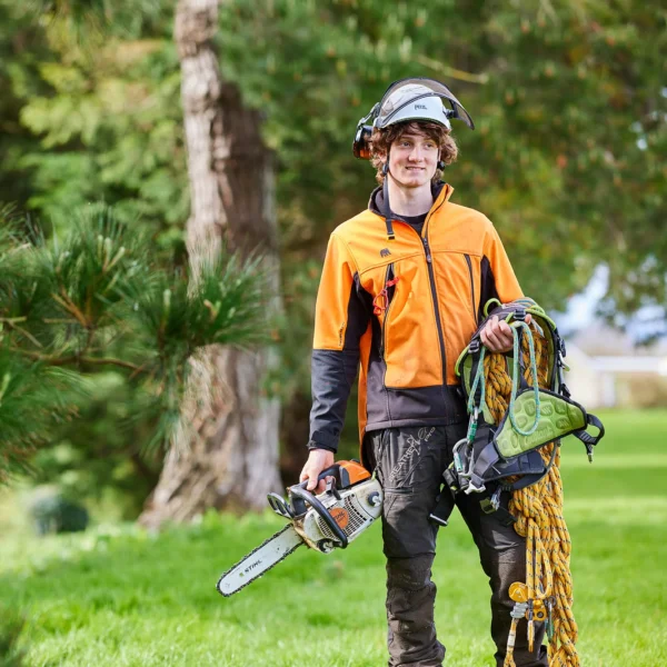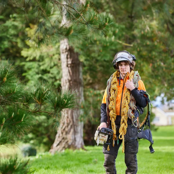 This equipment includes chainsaws and tree felling equipment, wood chippers and stump grinders, climbing and harness systems, and tree inspection and management tools.